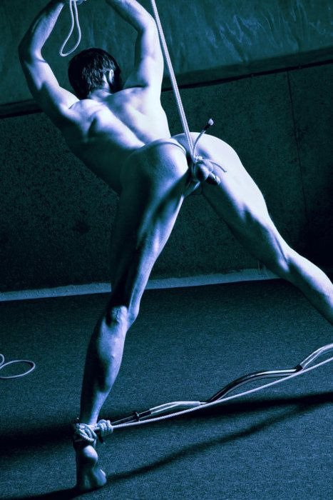 The photographer here is contorted4life over at DeviantArt. The specific photo is here. What’s most amazing is that this and the rest of his photographers are self-portraits – yes, you read that right – he ties himself up and then takes the photographs with timers. What’s even more interesting is that he’s straight and wants to have a career shooting the female form… but damn, he makes beautiful self-bondage shots.