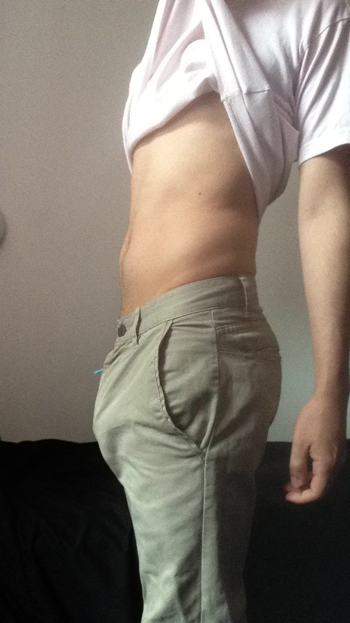 Love the false bulge the cage creates and the curled hands in the last picture. It’s now become second nature to keep his hands away from his locked cage. Perfection indeed.