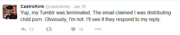 In case you guys were wondering, @castrokinky ‘s Tumblr blog has been nuked. You can follow him on Twitter for the time being. Sucks.
