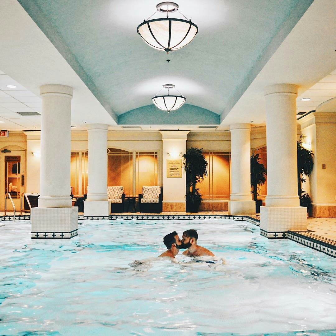 It was enough to give Rasheed the push to strip. He found it thrilling it be in this cavernous, hollow, swimming pool room with a beautiful brilliant man. Once the pants came off, the rest of the clothing fell away with ease. There was of course, plenty of ogling, between giant cannonballs and splashing.