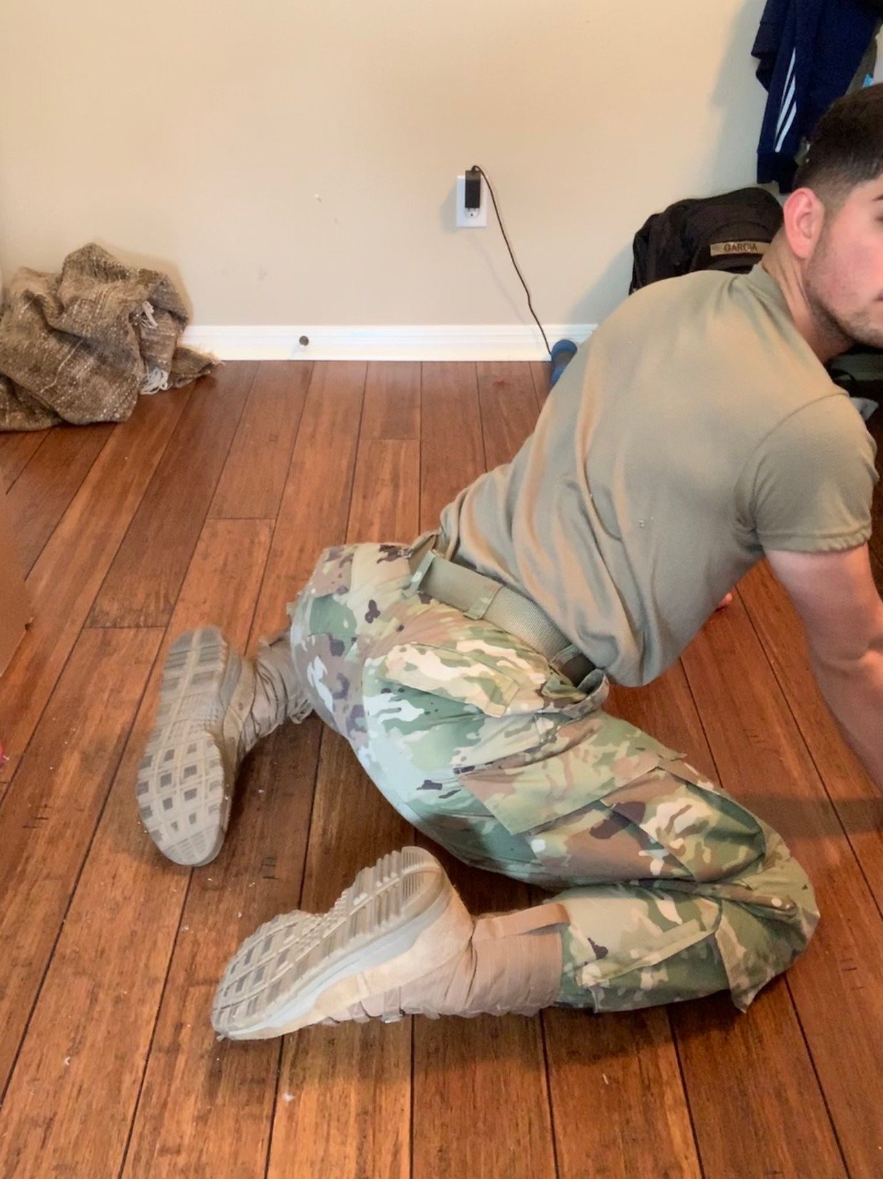 I had to try it. “Position 2, boy!” To my sheer delight, he dropped down into second position – knees wide, ass up, back arched, arms straight. It wasn’t the most elegant pose in mid-calf boots, stiff camo pants, and a thick belt, but it still got all the technical marks for accuracy. “Very nice, boy.” He sort of looked at me, wondering why I’m making him sit in this pose all of a sudden during our casual chat. I can’t help but smirk. The military’s bootcamp regimen is to break you down to build you back up into the obedient solider it demands in the field. Yet, despite the breaking and rebuilding, they could not erase the dungeon I’d bestowed on this young man. Dare I assume that his love of following my orders lead him to join the military?