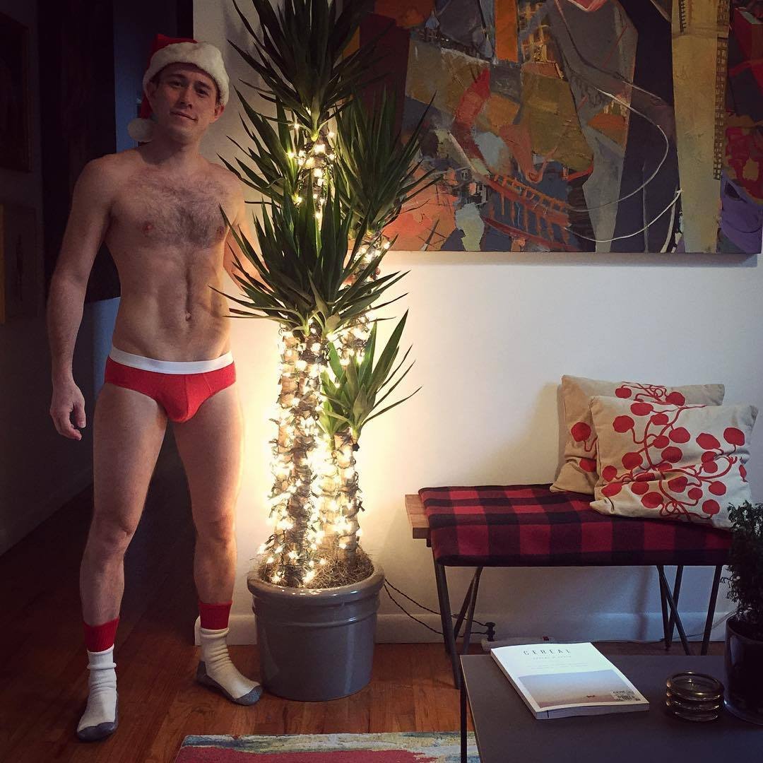 You giggle. “Look at you. You’re so adorable. And also sexy. Red is such your color…” You walk up to him so you can ran your hands up his body. The man’s stomach is a wall of muscle. “Are you my Christmas present?”