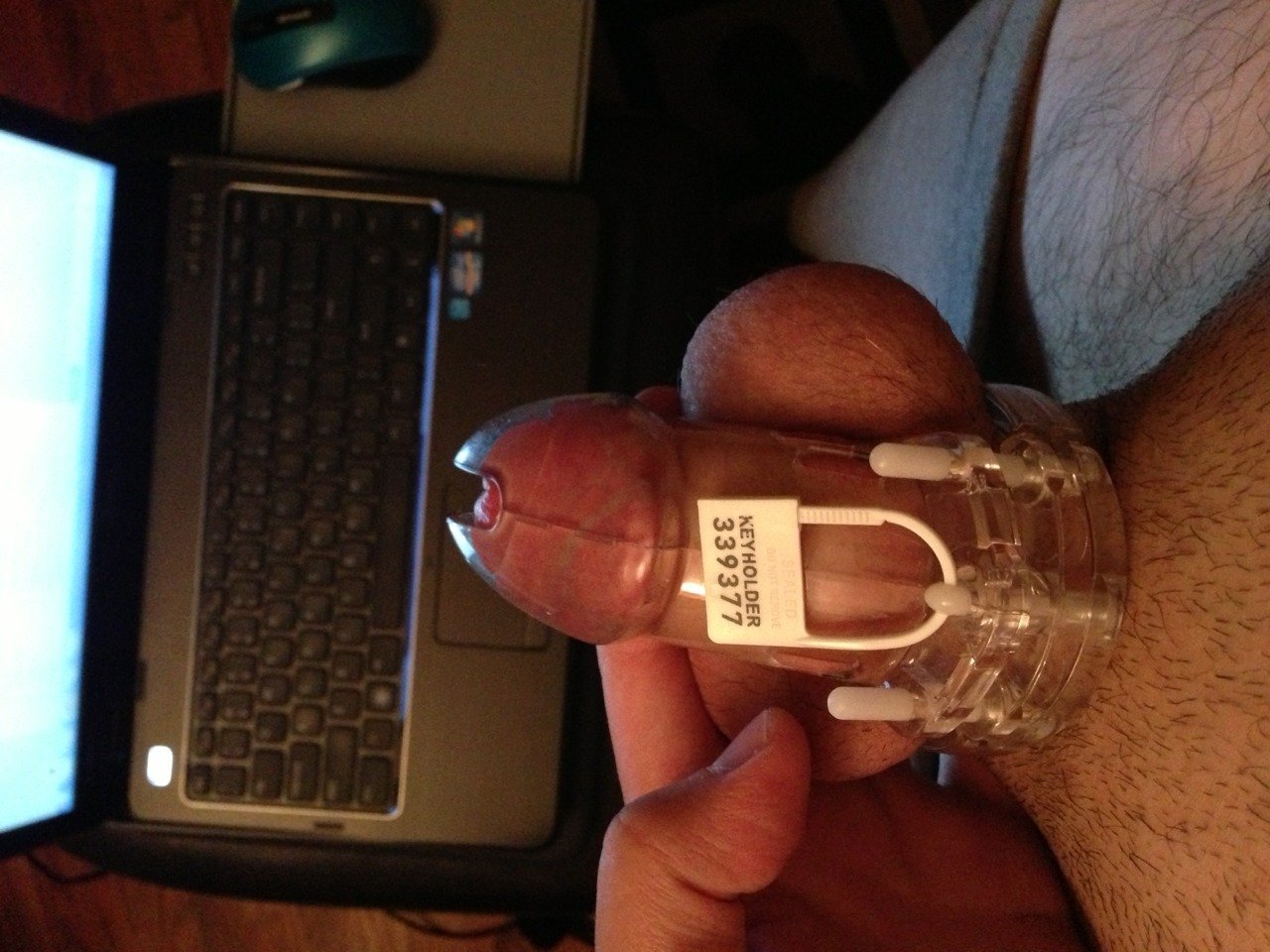 I’m a lucky boy! I have two doms controlling and enforcing my chastity. Master Rob likes to make sure I’m horny and straining in my device by making me read erotic stories and giving him a report along with a pic of my straining fag dick.