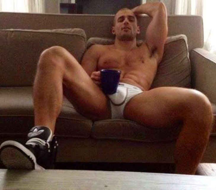 But where was my one-night stand? It was barely past dawn! Had he left? I bolted out bed and jogged through the house. What I saw in the kitchen stopped me in my tracks. There he was, bathed in the golden morning sun. Every skin cell in his tanned, gym sculpted body seemed to glow from the inside out. He was leaning casually against my counter, providing a beautiful silhouette of his pillowy pecs, protruding posterior, and um… wow. Tighty whities do not hide a thing, and his cock looked full and impressive tucked away safe and clean in his underwear. I was instantly jealous of the cotton. The man was an impossible ode to physical perfect and male beauty. Even his day-after scruff is flawless! I gave one of those dreamy, Disney sighs.