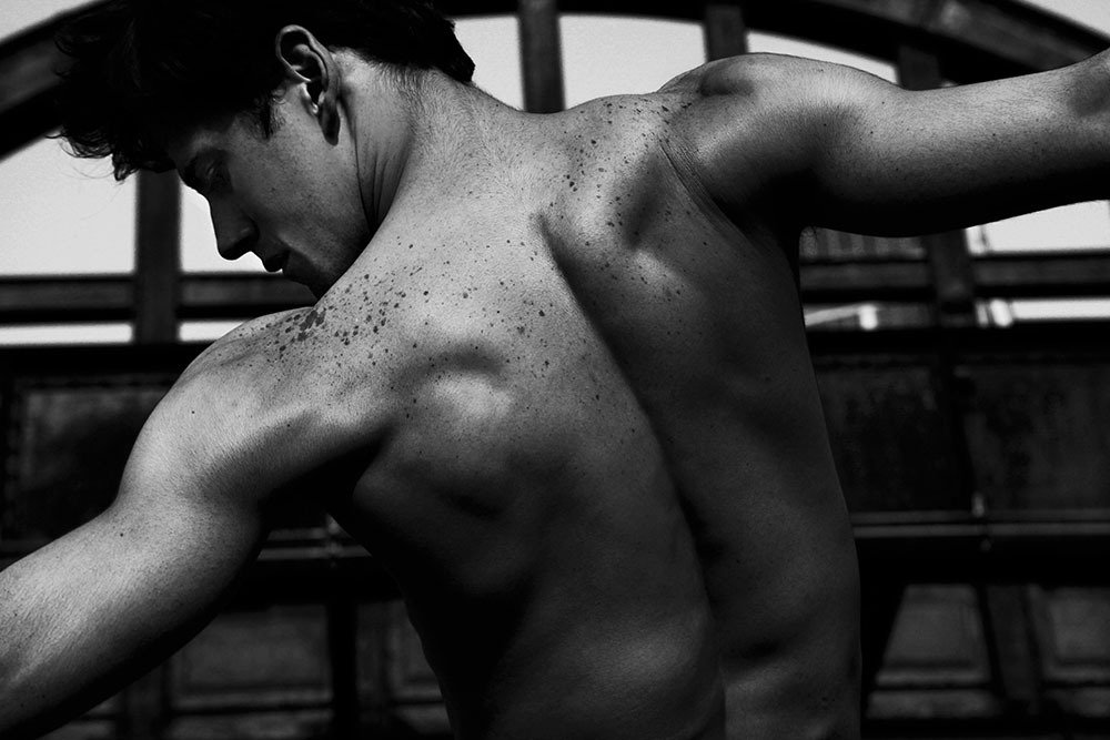 Out of everything I could love about these photos – the composition, the lighting, the poses, his musculature – my favorite thing is the freckles across his pectorals. They look like little stars.