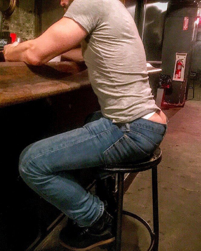 The young man glanced over his shoulder, then down at his own butt. He hastily covered himself. His cheeks turned red and he took a deep shot of whiskey. “Thanks.”