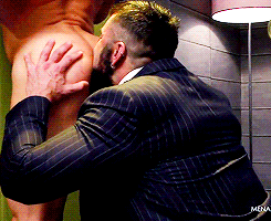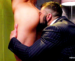 “Yes you did.” He reached out and grabbed my tie, pulling me up against him until I could smell him. Mark always wore this Chanel scent with these rich vanilla undertones that made my heart flutter. He pushed a soft kiss against me, and once I melted into him, he only gave me more and more. I pushed my tongue against his lips, seeking permission to enter. Mark still had his hand on my tie and he gave me a jolt and forced me back on the desk again, then pounced on my mouth and thrust his tongue into mine. I groaned into my boss, my fantasy of him dominating me slowly becoming a reality. Our kisses grew more intense, more hurried, as our underwear grew tighter, until we couldn’t breathe well and Mark pulled back.