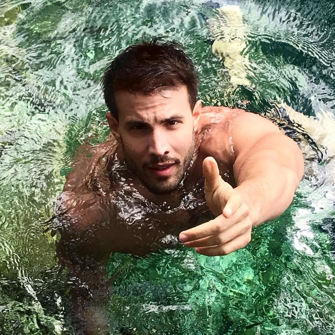 Dominic stopped at the base of the stairs and looked around for the source of the commotion as he squeezed the water out of the base of his hair. He glanced over two twinks standing at the edge of the pool. When they were spotted, they dissolved into giggles.