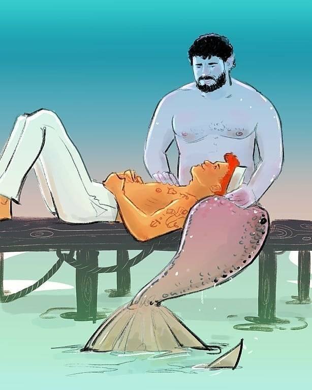 “Honestly, some part of me thinks I’m just running from my problems. But I only have problems when I’m home – I didn’t finish university, everyone expects me to date girls, and my parents are just disappointed in me I guess cause I never moved out. I only joined the Navy because I didn’t know what else to do. I don’t have any other skills besides working on a boat. As long as I’m in the Navy, I don’t have any problems.” “You like Navy?” the merman asked. Jack couldn’t pronounce his name properly, as he couldn’t use sonar. “I do.” “Lots of men. See them on beaches in same hat.” Jack giggled. “There are.” “Are you good at Navy?” “Yes. I may be promoted soon.” “Promoted is…good?” The merman asked. “Yes. More work, more money.” “Then no problem. Stay on water, no problem. Stay on lands, problems. Stay on water. Water always best.” Jack gazed up at his pretty blue eyes. “You make it seem so simple.” He furrowed his brow. “Is simple.” Jack chuckled. “Is your life simple?” The merman glanced out over the water. “Before, simple. No boats. Fish. Now boats, loud boats. Some boats take many many fish. But we still happy. But also complicated.” “What’s complicated?” Jack asked. “Men drive boats. But I like you.” “Oh. That is complicated. I like you too.” Jack reached up and cupped his cheek. The merman nuzzled it. Jack scratched his beard and the merman tilted his head like a puppy. “Six days, boat go?” The merman asked. “Five,” Jack said with a sigh. The merman pouted. “Stay?” Jack sighed. “Can’t. Navy.” “When come back?” “I don’t know. The merman thought. “You go toward sun set or sun rise?” “What?” Jack blinked. It took him a moment to realize the merman was asking if he was headed east or west. “Sun set.” The merman brightened. “I go with.” “What? Really? But…it’s so far from your beach.” “We go west. For spawning. Not now. In days. But early ok.” Jack smiled. “I would like that. I’d miss you.” “Miss you too. You see, yes? Land, problems. Water, no problems.” Jack reached for his hand. “Yes. I see.” They intertwined their fingers together and watched the clouds move over the sea.